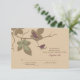 Personnalisez le texte sur cette vigne feuillue et mariage de automne d'oiseaux rsvp ou carte de réponse. Pour modifier le texte, utilisez l'option personnaliser. Pour les modifications plus étendues du texte, telles que les modifications de la police, de la couleur de police, de la taille de police et/ou du placement du texte, utilisez l'option customiser. Cette invitation présente un design naturel élégant en marron, violet, vert et bronzé qui fonctionnerait bien pour un mariage à l'automne. Couleurs naturelles avec jardin ou forêt, parfaites pour les mariées amoureuses de la nature ou les mariages en plein air. Bien que cette carte soit actuellement customisée comme carte de réponse pour un mariage, elle peut également être utilisée pour d'autres occasions spéciales comme un anniversaire de mariage, une invitation à une fête d'anniversaire, une invitation à une fête d'entreprise ou une fête de retraite. Ou l'utiliser comme invitation pour toute occasion spéciale. Vraiment, c'est à vous de décider. Tout ce que vous avez à faire est de changer le texte. Vous pouvez également modifier le texte et l'utiliser comme carte de réception, de direction et/ou d'hébergement.