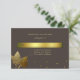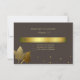 Carte de réponse Mariage de automne élégante faite en brun foncé, sur le devant, avec des graphiques d'une plaque de texte or, des pois de ton or sur le fond et deux feuilles dorés. L'arrière de l'invitation est fait dans un look doré texturé, avec du texte doré bronzé, sur le devant, prêt à personnaliser. Des produits correspondants sont disponibles.