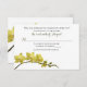 Le texte de cette élégante réponse mariage d'orchidées jaune pâle ou carte RSVP est entièrement personnalisable. Les couleurs sont le jaune pâle, le crème et le vert - couleurs mariages douces. Idéal pour les mariages ou les mariages du printemps et de l'été avec un thème orchidée jaune. Pour modifier le texte, utilisez l'option Personnaliser. Pour des modifications plus étendues de la carte, y compris des modifications de la police, de la couleur de police, de la taille de police ou du placement de texte, utilisez l'option personnaliser. Bien qu'elle soit actuellement customisée en tant que carte de réponse mariage, elle pourrait aussi servir de carte de réception, de direction et/ou d'hébergement avec des modifications au texte. Cette carte est actuellement prête à imprimer sur du papier métallique blanc glacé, mais elle est aussi très jolie sur de nombreux autres types de papier.