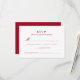 La Carte de réponse Mariage rouge Calligraphie moderne est la façon parfaite de recueillir le RSVP de vos invités dans le style. Doté d'une calligraphie fluide et élégante, et d'un jeu de couleurs rouge audacieux, cette carte de réponse apporte une touche moderne à une tradition mariage classique. Conçu pour compléter votre mariage sur le thème rouge, cette carte permet à vos invités de répondre facilement à votre invitation avec des options d'assistance ou non, ainsi que des choix de repas ou d'autres réponses personnalisées. Parfaitement conçu pour correspondre à la sophistication de votre collection de papeterie mariage globale.
