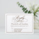 Sophistiquée et élégante, cette carte de réponse Mariage de Sepia Script moderne coordonnée avec notre Suite Mariage d'invitations et d'accessoires Faith Hope and Love. Conçu par Natalie Schorr pour Graphic Suite sur Zazzle.