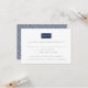 Épurées, chic et modernes, ces cartes de réponse de mariage ultra-modernes présentent "RSVP" sur un élément rectangulaire qui peut être personnalisé en un clic pour correspondre aux couleurs de votre mariage. Ajoutez la date de réponse souhaitée, les textes d'acceptation et de refus, ainsi que les préférences de repas ou de plat principal en lettrage sans empattement moderne gris charbon, puis ajustez la couleur à votre goût en suivant les instructions faciles ci-dessous. Les cartes sont imprimées au verso avec un motif grec moderne facultatif. Présentées en bleu marine classique et blanc.
