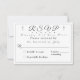 La conception utilise du texte au format approprié pour une carte de réponse. Le texte est affiché dans une police élégante et argentée à l'intérieur d'une bordure argentée. Deux petites croix sont affichées en haut de chaque côté du cap. Juste en-dessous de l'intitulé, on voit les mots "Répondez s'il vous plaît", en affichant les mots que signifie l'acronyme. Reverse présente un élégant faux satin arrière - plan à l'origine du nouveau nom du couple, affiché dans une grande lettre blanche. En dessous, les noms et la date du mariage du couple sont affichés sur un support blanc. Très élégant.