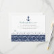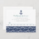 Carte RSVP de réponse d'inspiration nautique avec détails d'ancrage. Couleurs indiquées : Navy (003366). Ajoutez une pop de couleur dans le texte !