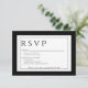 Cette carte de réponse mariage en noir et blanc est le complément parfait à une célébration élégante de cravate noire. Doté d'une typographie serif classique et d'un agencement propre, il permet aux clients de RSVP et de sélectionner leur entrée avec facilité. Idéal pour les mariages traditionnels ou modernes. Personnalisez avec vos noms, dates et options de dîner pour correspondre à votre suite d'invitations.