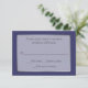 Carte RSVP tout usage fait dans une régence couleur bleu violet de minuit, avec des graphiques d'une zone de texte blanc bordée d'argent semi transparent, avec texte noir personnalisé. La taille est assez petite pour s'adapter à toutes les tailles d'invitation populaires. Customisez le texte en fonction de vos besoins.