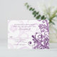 Le texte sur cette élégante carte de réponse de mariage (rsvp) florale abstraite violette et blanche est entièrement personnalisable. La taille est de 8,9 cm x 12,7 cm. Pour modifier le texte, utilisez l'option de personnalisation. Pour des changements plus importants sur la carte, y compris des modifications de la police, de la couleur de la police, de la taille de la police ou du placement du texte, utilisez l'option de personnalisation. C'est une carte de réponse charmante et élégante pour un mariage en toute saison. Bien que actuellement personnalisée pour un mariage, cette carte de réponse conviendrait également pour diverses autres occasions spéciales. Cette carte est actuellement configurée pour être imprimée sur du papier blanc simple, mais elle est également très jolie sur du papier métallisé blanc givré, lin ou feutre (remplacez le fond blanc par de la crème). Vous pouvez également modifier le libellé de cette carte pour en faire une carte d'itinéraire, de réception et/ou d'hébergement ou l'utiliser comme invitation pour toute autre occasion spéciale. Les couleurs sont le violet aubergine, le violet lavande et le blanc. Certains produits assortis que vous pourriez aimer :