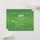 Carte de réponse pour Bar Mitzvah de football vert et blanc. Cette carte de réponse pour Bar Mitzvah de football américain présente un fond d'herbe verte qui ressemble à un terrain de football. Il y a également des marquages et des chiffres blancs que l'on trouve sur un terrain de football. Ce fond de terrain de football vert et blanc est associé à une police de caractère sportive. Cette carte de réponse pour Bar Mitzvah de football conviendrait parfaitement pour un Bar Mitzvah sur le thème de la NFL ou du Super Bowl. Cette carte de réponse pour Bar Mitzvah de sport de football pourrait convenir pour n'importe quelle saison et est un excellent choix pour un garçon qui aime le football américain.