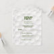 Carte de réponse à une Bar Mitzvah sur le thème du golf avec un fond de balle de golf. Cette carte de réponse à une Bar Mitzvah sur le thème du golf est élégante et moderne. Cette carte de réponse à une Bar Mitzvah sur le thème du golf présente un fond subtil de balle de golf alvéolée. Les couleurs de cette carte de réponse à une Bar Mitzvah élégante sur le thème du golf sont le blanc et le vert.