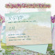Cartes de réponse pour mariage sur la plage avec mention du nombre d'invités. Fond marin avec texte bleu sarcelle foncé. Ce design fait partie de la collection de mariage 'By the Sea'.
