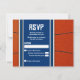 Carte de réponse pour Bar Mitzvah sur le thème de basketball avec un fond de ballon orange. Cette carte de réponse pour Bar Mitzvah sur le thème de basketball est élégante et moderne. Cette carte de réponse pour Bar Mitzvah sur le thème de basketball présente un fond de ballon orange associé à un look de maillot de basketball bleu derrière le texte. Les couleurs de cette carte de réponse pour Bar Mitzvah sur le thème de basketball sont le bleu, l'orange, le blanc et le noir.
