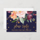 Cette carte de réponse pour le choix du menu floral d'automne est parfaite pour un mariage d'automne. Le design présente un magnifique bouquet de fleurs aux tons rose saumon, orange pêche et bordeaux marsala avec une typographie à feuille d'or fausse et des confettis. Cette carte de réponse de mariage demande commodément aux invités quel repas ils aimeraient à votre réception.
