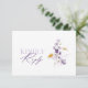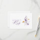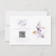 Une carte de réponse moderne et élégante comportant un code QR pratique pour des réponses faciles. Le design est rehaussé de délicates fleurs sauvages à l'aquarelle dans des tons de pourpre et de jaune doux, ajoutant une touche romantique et sophistiquée. Parfaite pour les mariages, les douches de mariée ou les événements formels, cette carte de réponse allie beauté et commodité, rendant les réponses des invités transparentes.