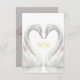 La carte de réponse QR code pour mariage présente un design romantique de cygnes sur le devant ainsi que votre monogramme souhaité. Choisissez une photo préférée pour le verso. Le verso de la carte comporte un texte doré élégant qui se superpose à votre photo et un QR code. Utilisez le QR code pour votre réponse de mariage (ou un autre lien souhaité). Personnalisez le texte. Ajoutez votre photo. Utilisez le modèle pour créer votre propre carte de réponse QR code pour mariage.