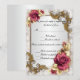 Jolies roses rouges et cadre à motif de feuilles dorées. Cette jolie carte de réponse/réponse de mariage est prête à être personnalisée pour votre jour de mariage spécial. Personnalisez la carte en changeant le texte dans les champs prévus au recto et au verso. Vous pouvez changer la police, la taille et la couleur, ainsi que le type et le style de papier.