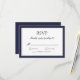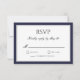 Carte de réponse RSVP à bordure grise et bleu marine. Texte en écriture élégante et bloc. Dos bleu marine.