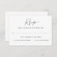 Design simple et élégant avec calligraphie et polices modernes. Il y a un nombre d'invités pour une personne à répondre. Le verso comporte une option de choix de repas et un texte pour les allergies alimentaires.