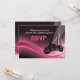 Carte de réponse RSVP de mariage de motard routier rose, avec une moto sur un fond dégradé abstrait rose, blanc et prune et un maillage blanc. Certains éléments fournis par Clipartandfonts.com.