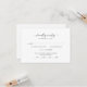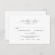 Cette carte RSVP script est parfaite pour un mariage minimaliste. Calligraphie manuscrite moderne et simple, lettrage associé à une police italique-serif classique. Personnalisable dans n'importe quelle couleur. Gardez le design minimal et simpliste, en l'état, ou personnalisez-le en ajoutant vos graphiques et vos illustrations.