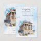 Carte de réponse de mariage grec RSVP pour votre mariage de destination en Grèce! Doté d'une belle architecture grecque du Parthénon Acropole. Ajoutez vos détails personnalisés avec facilité !