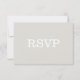 Faire-part de mariage moderne et élégant, dans un sable et blanc, avec grand texte gras lisant RSVP. Le texte en taupe est prêt à être personnalisé pour votre journée spéciale. Correspond à notre ensemble de Faire-part de mariage Monogrammes modernes de sable.