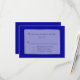 Élégante carte de réponse RSVP tout usage réalisée dans un ton bleu royal, avec des graphiques d'une zone de texte encadrée de ton argent. Personnalisez le texte noir pour répondre aux besoins de votre événement.