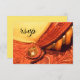 Customisez la charmante carte de réponse RSVP Western Saddle Mariage campagnard avec votre date de réponse de mariage. Cette carte de ranch personnalisée décontractée mais classe, de style r.s.v.p., présente une photo de ferme d'une selle de cheval en cuir à outils marron et jaune avec un design feuille complexe.
