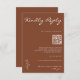Carte de réponse moderne en terre cuite avec code QR représentant un motif de brindille ou de feuille. L'invitation de mariage assortie est également disponible en forme arquée ou standard dans la boutique.