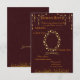 Complétez votre suite de papeterie de mariage avec cette élégante carte de réponse RSVP marron et or. Avec un fond bordeaux riche et des accents dorés sophistiqués, ce design raffiné permet aux invités de confirmer facilement leur présence avec style. Parfait pour les mariages formels, traditionnels ou indiens, le modèle est entièrement personnalisable et se coordonne parfaitement avec les invitations, les cartes 'Save the Date' et les cartes de remerciement correspondantes.