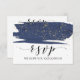 Cette carte de demande de chanson à l'aquarelle marine et or est parfaite pour un mariage élégant. Ce design abstrait de nuit étoilée présente un pinceau dramatique d'aquarelle bleue marine surmonté d'un magnifique faux éclat doré. Créez votre liste d'invités de mariage et votre liste de chansons de piste de danse en même temps ! Cette carte de réponse de mariage demande commodément aux invités s'ils pourront assister à votre mariage, et quelle chanson les fera danser.