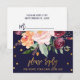 Cette carte de réponse de demande de chanson florale d'automne est parfaite pour un mariage d'automne. Le design présente un magnifique bouquet de fleurs de couleur rose saumon, pêche orange et bordeaux marsala avec une typographie à feuille d'or fausse et des confettis. Créez votre liste d'invités de mariage et votre liste de chansons pour la piste de danse en même temps ! Cette carte de réponse de mariage demande commodément aux invités s'ils pourront assister à votre mariage, et quelle chanson les fera danser.