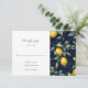 Notre collection de mariage de destination ''Lemon Tree'' présente des illustrations d'aquarelle de citron et de branches de citronnier associées à des polices élégantes facilement personnalisables dans lesquelles toutes vos informations sont écrites. Cette collection propose quelques options de couleurs de fond ; bleu foncé, noir et blanc. Découvrez notre magasin pour plus d'articles assortis parfaits pour un mariage d'été ou de destination.
