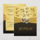 Cette carte de réponse RSVP florale noire et or a un ruban avec impression or avec une paire de faux bijoux diamants imprimés et des cœurs joints en paillettes or FAUX qui sont sur l'invitation des 50 ans de mariage montrée ci-dessous. Tout le texte est personnalisable, ainsi que les choix de papier. Si vous avez besoin d'autres articles assortis dans ce design, veuillez envoyer votre demande à niteowlstudio@gmail.com.