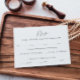 Design simple et élégant avec calligraphie et polices modernes. Il y a un décompte d'invités pour deux personnes à répondre et une option de choix de repas.