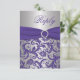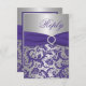 CARTE DE RÉPONSE ruban imprimé damas violet argent