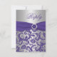 Cette carte de réponse au motif floral damassé gris argent et violet faux embossé présente un RUBAN IMPRIMÉ avec une broche de cristaux qui correspond à l'invitation de mariage présentée ci-dessous. Le type de papier et tout le texte sont entièrement personnalisables. Si vous avez besoin d'autres articles assortis ou si vous souhaitez cette carte dans une combinaison de couleurs différente, veuillez envoyer votre demande à niteowlstudio@gmail.com.