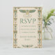 Une carte de réponse égyptienne antique majestueuse et captivante avec texture de papyrus, icônes de lotus et d'ankh - parfaite pour une suite de mariage divine de couleur vert-or. Options de réponse et date entièrement modifiables pour une finition premium de qualité muséale.