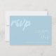 Ceci est un modèle de carte de réponse de mariage moderne bleu clair avec choix de repas, qui sera parfait pour tout mariage. Cette carte de réponse est double face et comporte des monogrammes et un site web de mariage (facultatif) au verso. Tout le texte est modifiable, il suffit de cliquer sur 'Personnaliser ce modèle'. Vous pouvez également changer la couleur de fond, il suffit de cliquer sur "Personnaliser davantage".