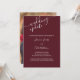 Carte de report de mariage avec photo personnalisée - ajoutez votre propre photo au verso. Cette carte bordeaux présente une écriture manuscrite élégante pour les mots "mise à jour du mariage" et les noms des mariés. Le texte exemple indique "En raison d'événements récents, le mariage de [vos noms] a été reporté. Nous vous tiendrons informés dès que nous aurons fixé une nouvelle date. Ça a été une décision difficile et nous vous remercions pour votre compréhension". Le modèle est prêt à l'emploi pour que vous puissiez ajouter votre photo, vos noms et modifier autant de texte que vous le souhaitez.