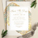 Cette carte de réservation chic présente un design de paillettes iridescentes étincelantes en or et en teintes pastel. La typographie élégante et les accents scintillants créent un look sophistiqué, parfait pour annoncer votre jour spécial avec style. Personnalisable avec les détails du mariage, cette belle carte ajoute une touche de glamour et de charme à votre papeterie de mariage.