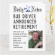Carte de retraite sous forme de journal. Carte de retrait du conducteur d'autobus. Votre nom Choix et la photo ajoutée comme personne à la retraite.