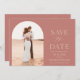 Annoncez votre jour spécial avec cette carte de sauvegarde de date romantique. Avec un design d'arche moderne sur le devant et un magnifique bouquet floral au dos, c'est parfait pour donner le ton de votre mariage.
