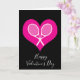 Jolie carte de Saint-Valentin rose et blanche de la part d'une personne qui aime le tennis. Insérez votre propre message à l'intérieur. Fond noir avec cœur rose