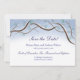Carte de sauvegarde de date plate pour la suite de mariage romantique des branches d'arbre enneigées d'hiver. Le design présente des branches d'arbre aquarelles avec des aiguilles de pin formant une arche autour de mots bleus marine. La neige sur un ciel bleu est présentée au verso. Imaginez un tour en traîneau à travers un arboret hivernal.