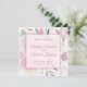 Annoncez votre date de mariage imminente avec une élégance moderne. Les roses roses et la verdure remplissent l'arrière-plan, tandis qu'une superposition est centrée affichant les noms du couple, le lieu de mariage et la date. Derrière les informations de sauvegarde de date, on aperçoit l'arrière-plan floral.