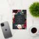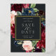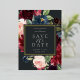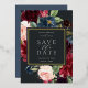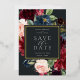 Notre carte de sauvegarde de date de mariage Radiant Bloom encadre vos détails de mariage avec une bordure carrée élégante de feuillage et de fleurs aquarelles luxuriantes en rose blush, prune bordeaux et bleu poussiéreux, avec une garniture en feuille d'or véritable sur un fond charbon riche.