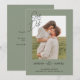 Cette carte de save the date photo vert sauge bohème est le moyen idéal pour annoncer votre mariage imminent avec style et charme. Cette carte de save the date classique présente un fond vert sauge magnifiquement conçu, créant une esthétique rustique et chic qui saura conquérir le cœur de vos invités. Le point fort de cette carte est la section photo personnalisable, vous permettant d'ajouter une touche spéciale en y insérant une photo de vous et votre partenaire qui capture votre amour et votre personnalité. La typographie est également entièrement personnalisable, vous donnant la liberté de choisir la formulation qui convient le mieux à votre événement.
