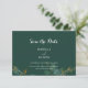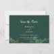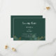 Annoncez votre jour spécial avec style avec cette carte de sauvegarde de date émeraude, conçue avec des feuilles aquarelles dans des tons émeraude riches et une calligraphie moderne. Cette mise en page horizontale offre une présentation élégante et épurée, parfaite pour les thèmes de mariage minimalistes et botaniques. Personnalisez avec vos détails pour créer un souvenir intemporel que vos invités adoreront.