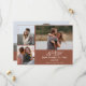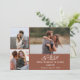 Capturez votre histoire d'amour avec cette carte de sauvegarde de date moderne en terre cuite rouille, dotée d'un collage de photos stylé et d'une typographie élégante. Parfaite pour les mariages bohèmes, terreux ou automnaux. Entièrement personnalisable avec vos photos et détails de mariage.