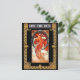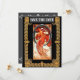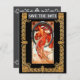 Carte de sauvegarde de date de mariage avec fond gris. Avant représente la danse d'Alphonse Mucha. Arrière contient deux enjolivures avec les détails personnalisés du mariage à venir.